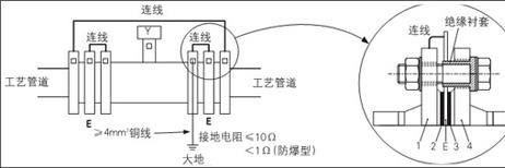 電磁流量計(jì)安裝在具備陰極掩護(hù)的金屬管道上的接中央法